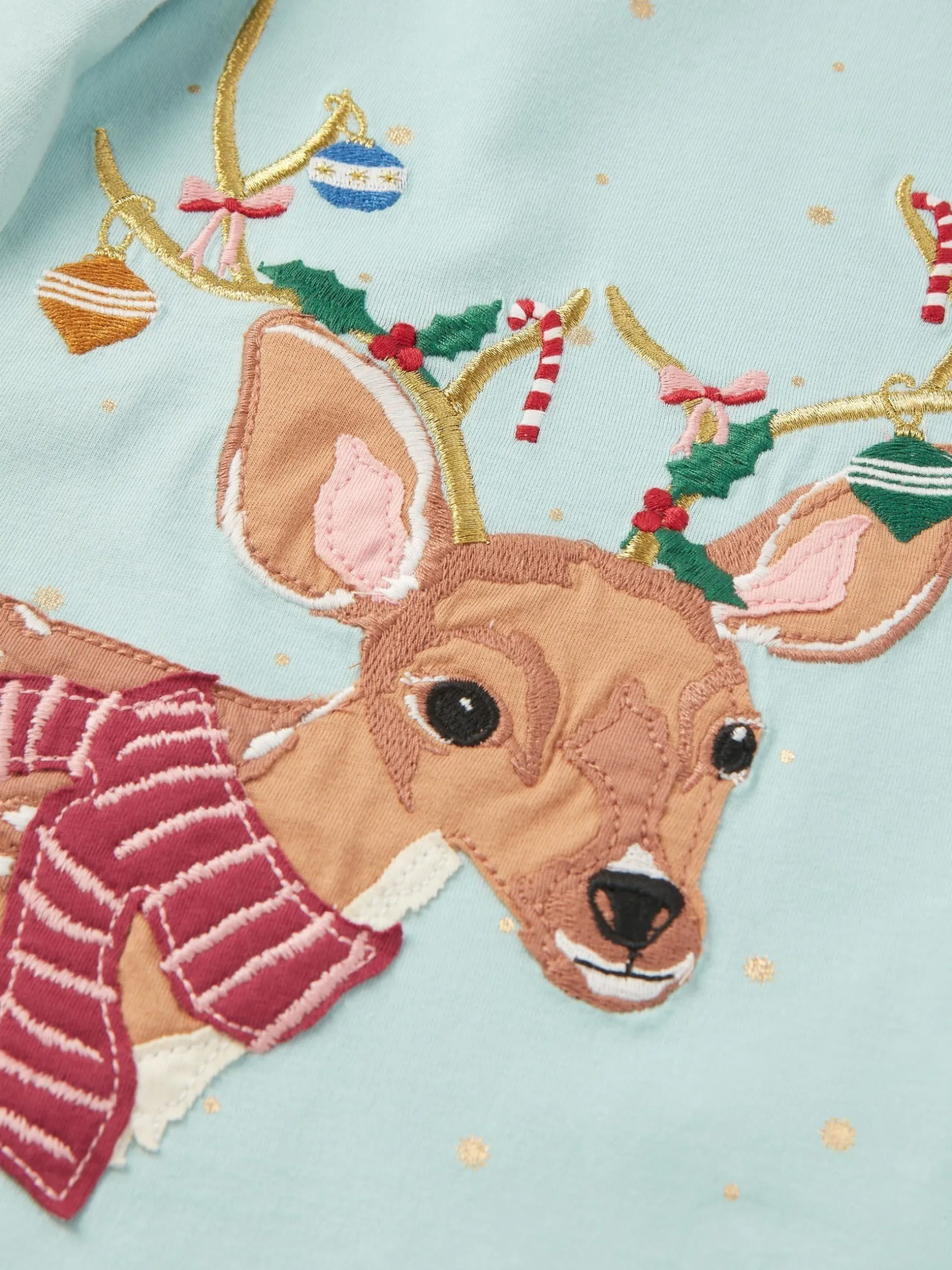 If any top is going to be a big hit with your little one, it’s the Ava. It has an applique design to the front that’s packed full of personality (they’ll be showing it off to everyone they meet). And the crew neck, relaxed fit and long sleeves with dropped shoulders make it rather handy for layering under gilets, jumpers and more. It’s finished with a Joules embroidered hare to the hem and logo to the outer back neck. Jersey. Relaxed fit. Long sleeves. Dropped shoulders. Crew neck. Straight hem. Applique detailing to the front. Joules embroidered hare to the hem