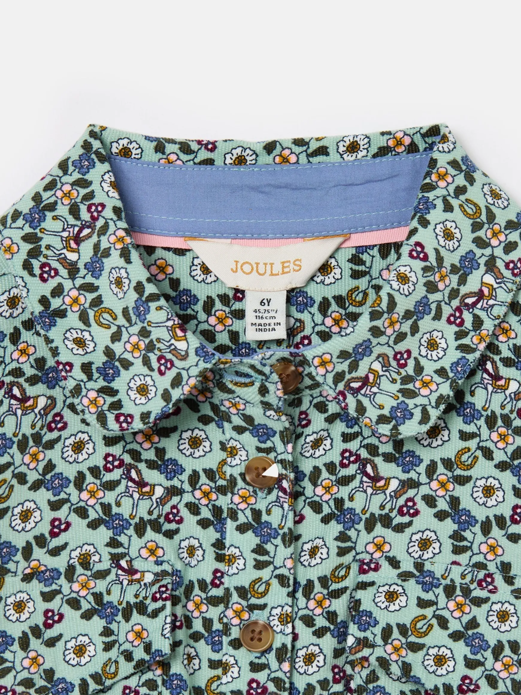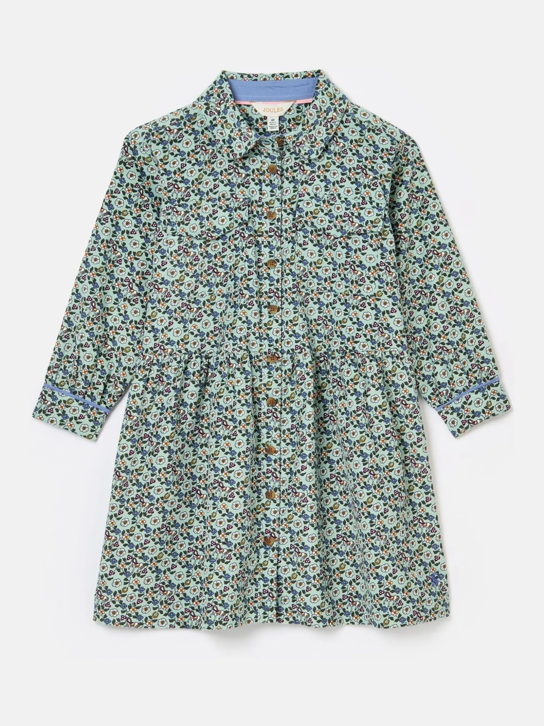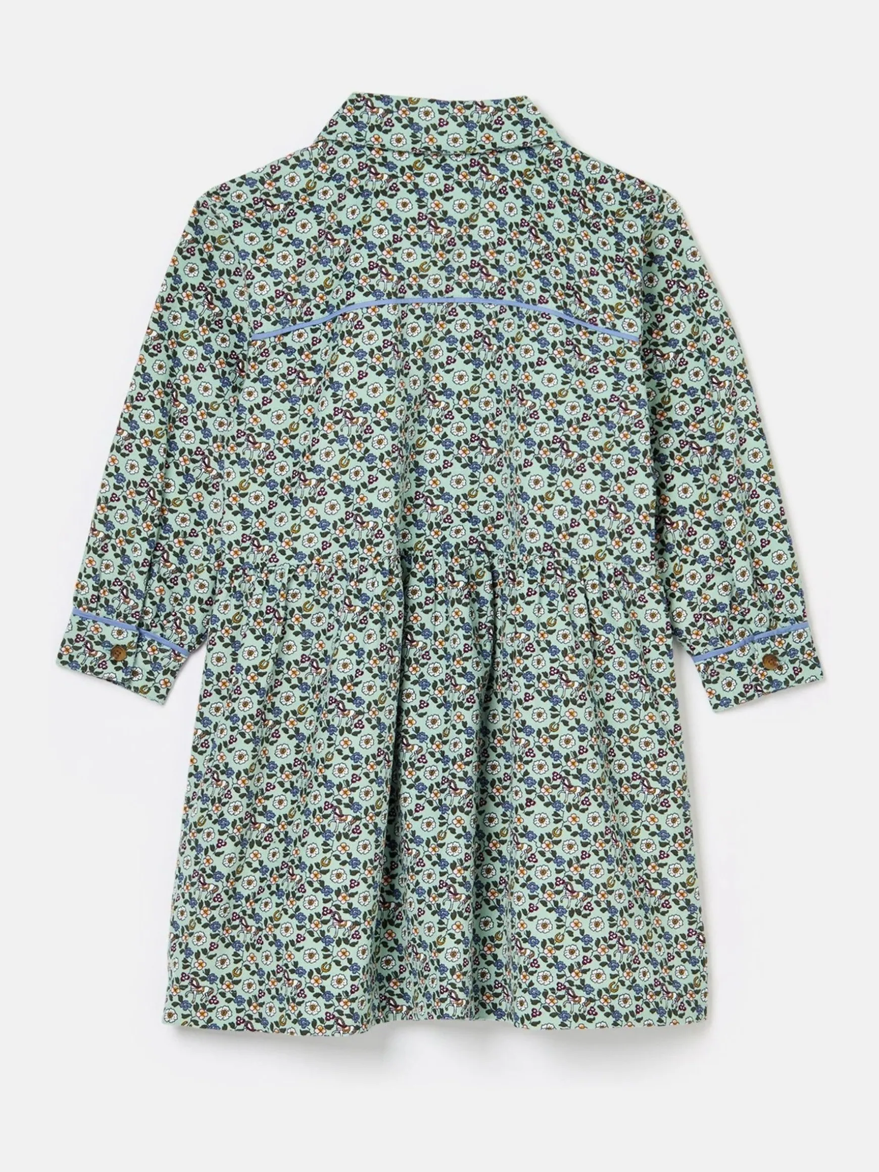 A shirt dress designed for the autumn and winter months, Elodie is the perfect piece to wear with tights and boots. It’s crafted from hardwearing cotton corduroy, has an a-line shape skirt and a gathered waistband to create twirl-worthy fullness. The long sleeves with button cuffs makes it easy to roll the cuffs up or down and for layering under jackets or coats. The button down fastening, collar and two patch pockets to the chest gives it that traditional shirt dress look. It’s finished with a hand-drawn floral print that will make it their favourite thing to wear, for every occasion! Cotton corduroy. Shirt-style dress. Button down fastening to the front. Gathered waistband. Full a-line shape skirt. Long sleeves with button cuffs. Collar. Two patch pockets to the chest. Hand-drawn print.