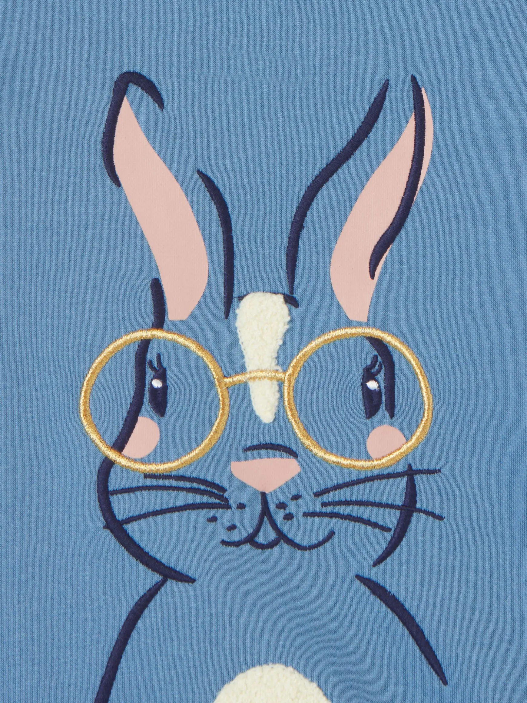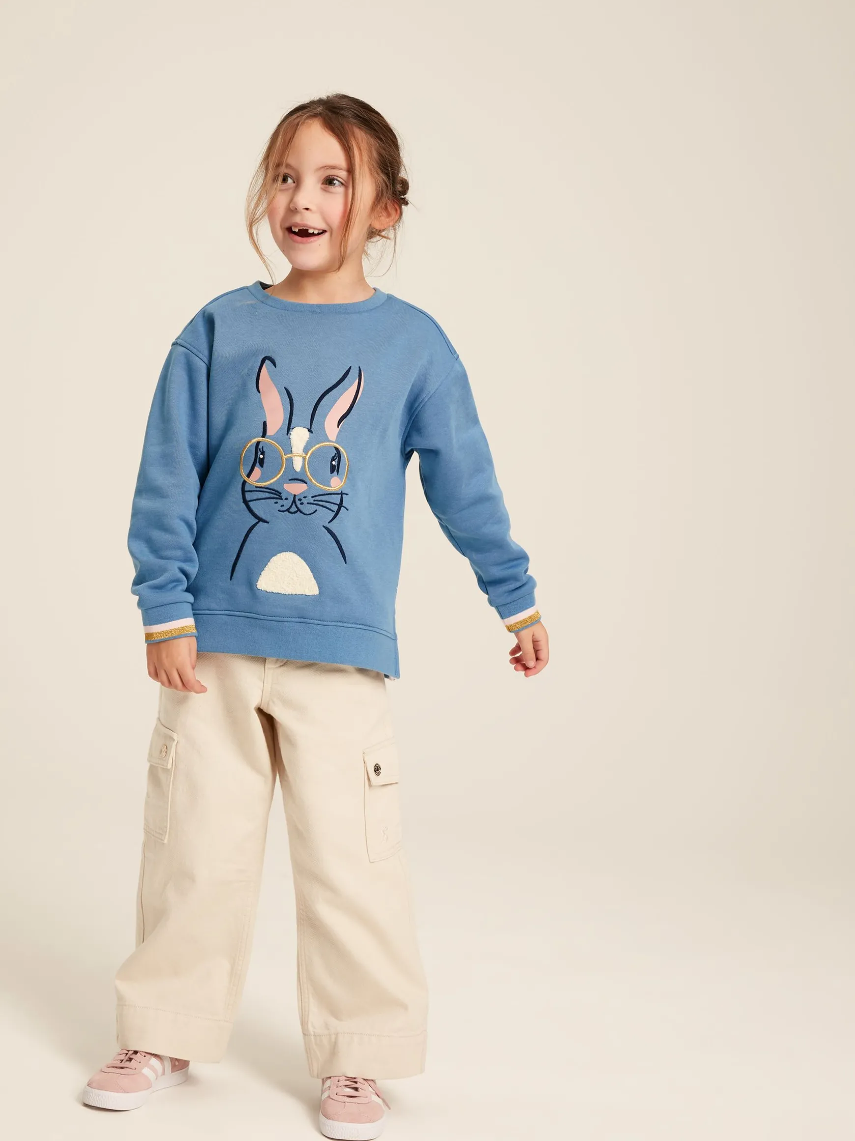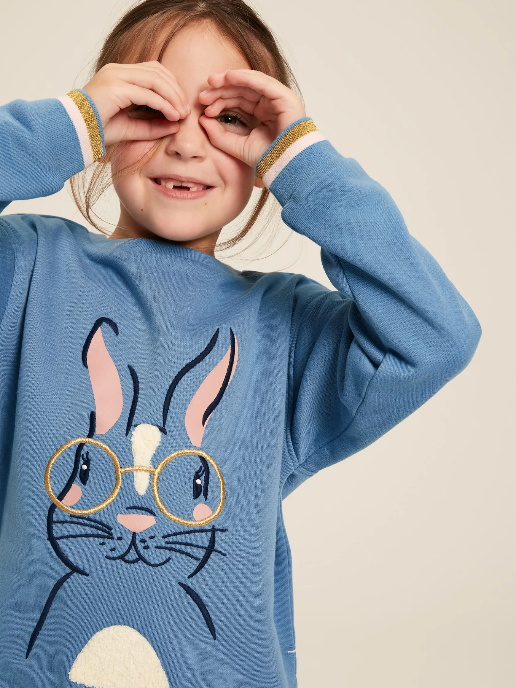 Girls’ Mackenzie Blue Rabbit Embroidered Artwork Crew Neck Sweatshirt