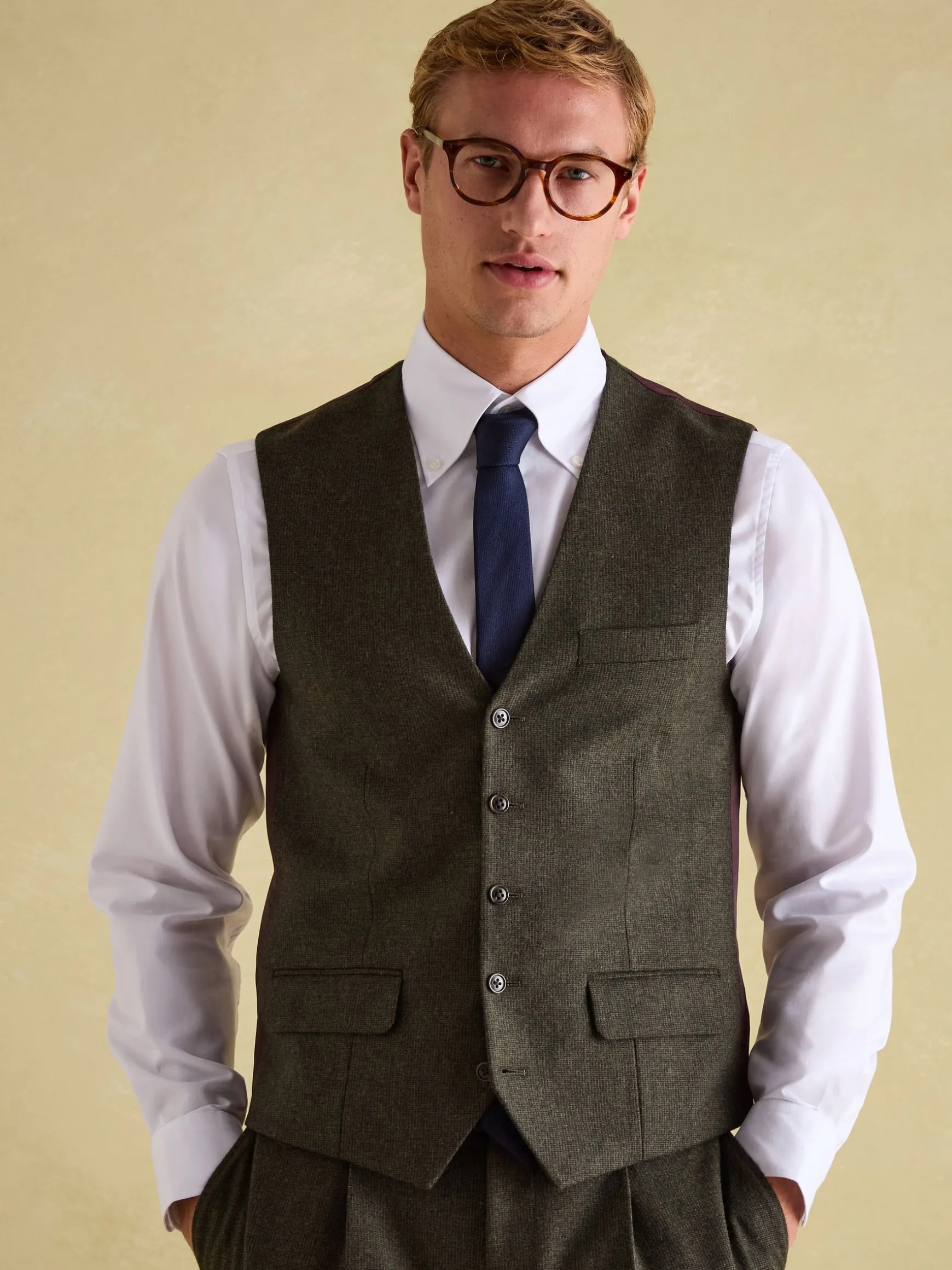 Adding both structure and texture to a suit, a waistcoat is the perfect way to dial up the style on your formal attire. This one is cut from a soft Italian pinhead fabric and tailored to a slim fit through the body. It has a five button fastening, mock pocket detailing to the front and chest and a printed satin lining. A rear cinch bar allows you to find your perfect fit. Layer over a crisp white shirt and with the matching suit jacket and trousers for weddings, the races, work meetings and more. nn- Slim fitn- Italian pinhead fabricn- Single breastedn- Mock pockets to the front and chestn- Printed satin lining n- Rear cinch for an adjustable fitn- Five faux horn buttons to the front