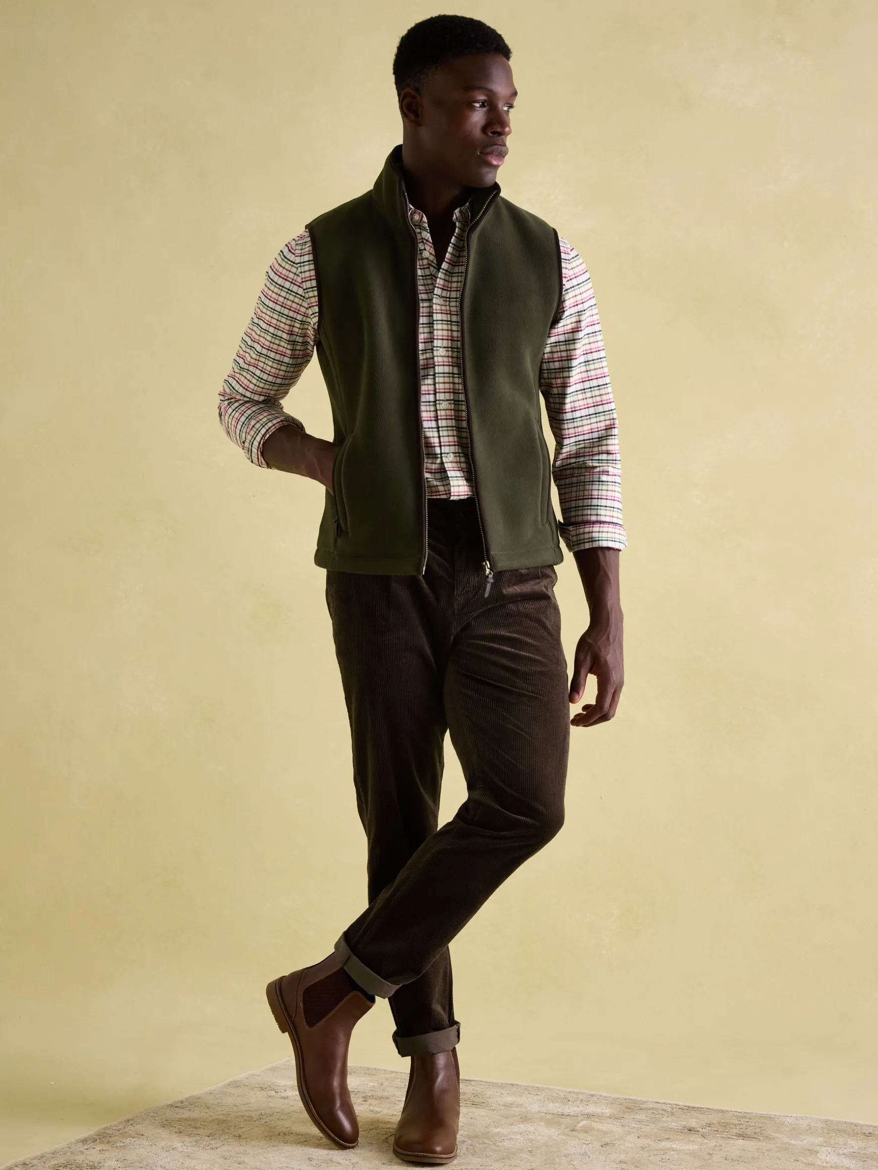 Worn over a shirt or a jumper (or both) this fleece gilet will cut a practical dash, whilst freeing your arms for clambering over stiles, foraging for autumn fruits or plundering the farm shop with ease. The funnel neck will ensure your neck stays warm, the zip fastening (with leather puller) is handy, as are the micro-fleece lined zip pocket and adjustable hem adds another level of function. nnFunnel necknZip fasteningnZip pocketsnAdjustable waistnCord trims and bindings