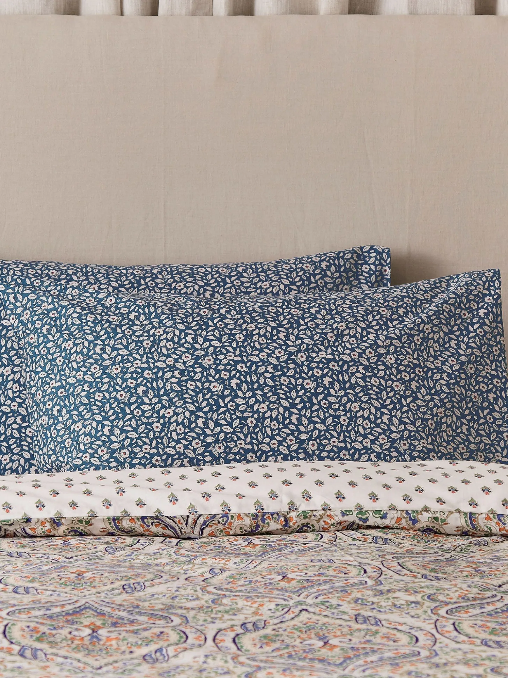 Adorned with a high-coverage floral ditsy print and crafted from breathable cotton percale, this set of two pillowcases will add another layer of comfort (and style) to your bedding. The print uses a royal blue and crème colour palette that will elevate your room, and complement a range of bedding sets. With a 180 thread count they’re soft and comfortable – perfect for hitting snooze on Sunday mornings. Set of two standard pillowcases. 100% cotton percale. 180 TC. Ditsy floral print. Dimensions: 74x48cm.