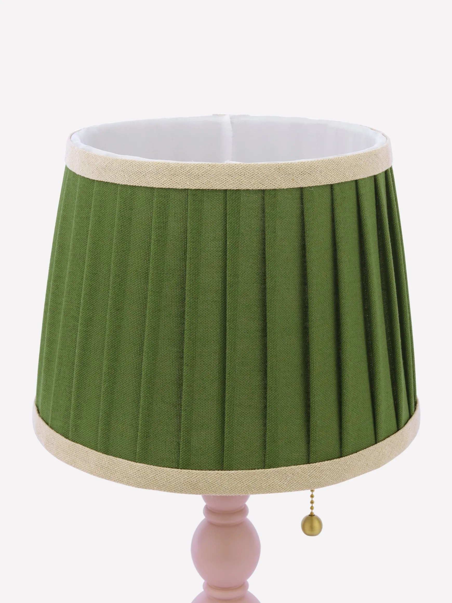 Bright, fun and with a touch of the quirky, the Harewood table lamp will be a talking-point of your home. Its sculptured stand and round base is made from rubberwood and is painted with a coloured matte paint – perfect for those with an eye for bold decor. The linen tapered lamp shade features neat pleated detailing with a coloured border and gives off a warm glow that will instantly make the room feel cosy. Its plug-in design makes it easy to use, while the pull cord function adds a touch of retro inspiration. This piece calls for turning off the overhead lights, making yourself a cuppa and flicking through the latest interior magazine. nnRubber wood stand and basenMatte painted finishnPull cord functionnPleated linen lamp shade with coloured bordernMatching Harewood floor lamp available separatelynDi: 200mm x H.390mm