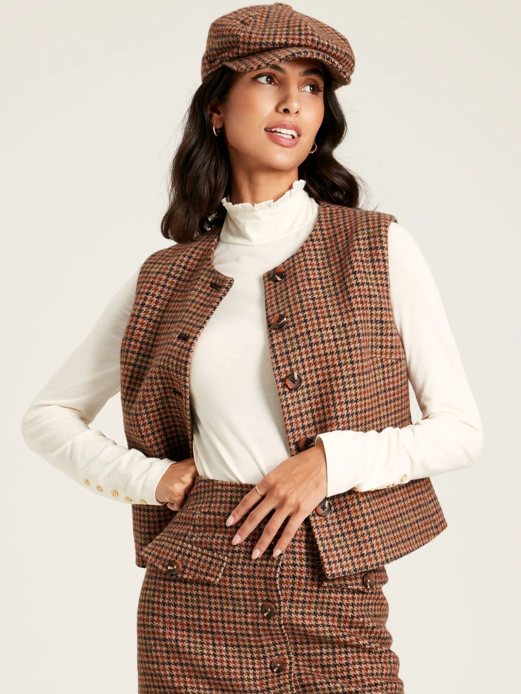 Brits have been sporting the flat cap since the 16th Century and it remains a style synonymous with life in the countryside. The Harrogate adopts a baker-boy style notable for its more voluminous crown and central button top. It’s crafted from hardwearing tweed and features a full lining adorned in an equestrian-inspired print. As per the classic look of a baker boy hat, it has a popper fastening connecting the crown to the peak which can be worn open or closed. When it comes to wearing it for the everyday, opt for styling it with a dress and a gilet to create a traditional-with-a-twist outfit. Heritage tweed. Baker boy style. Voluminous crown. Central button top. Popper fastening connecting the crown to the peak. Equestrian-inspired printed lining. Internal branded label.