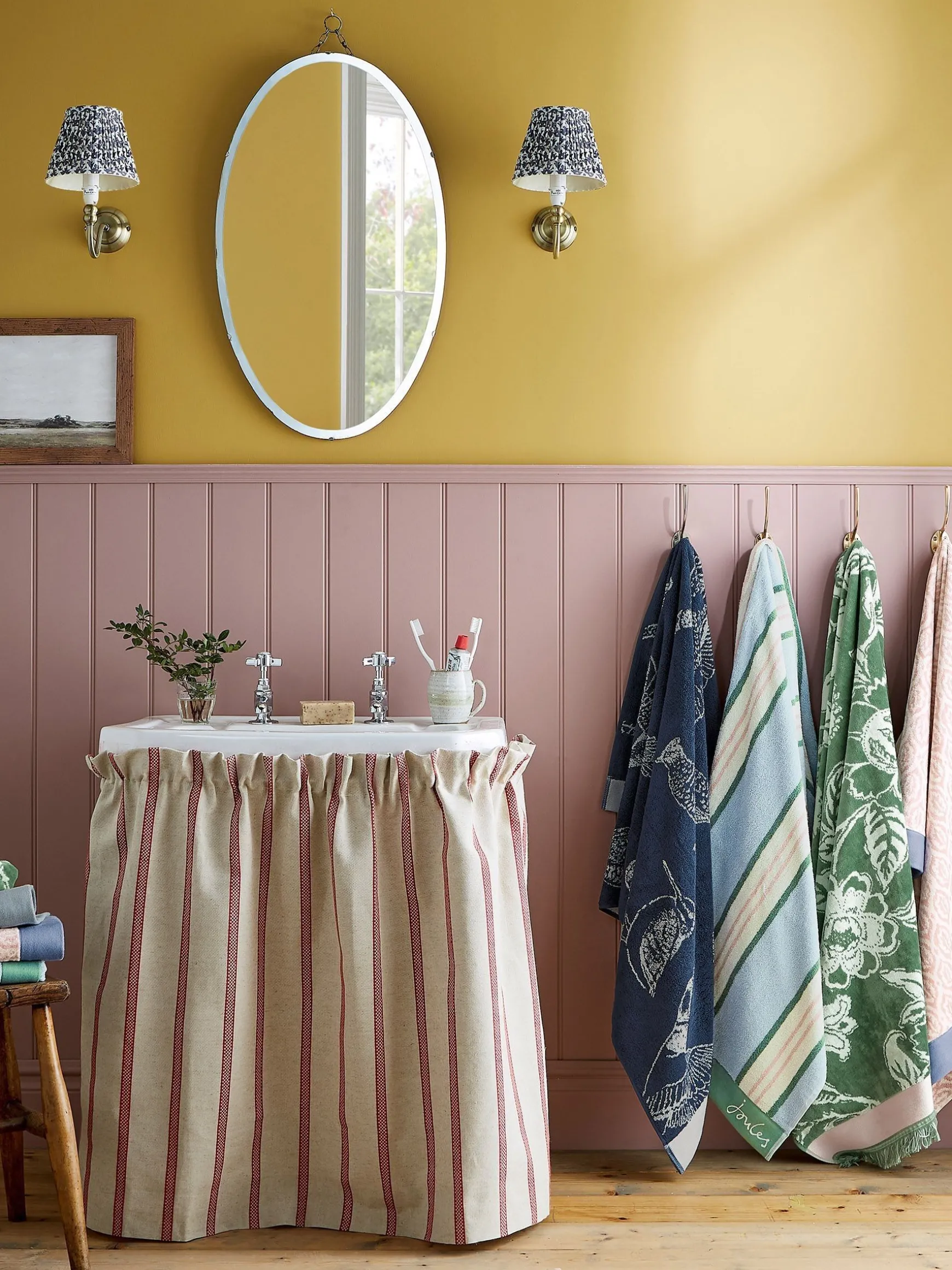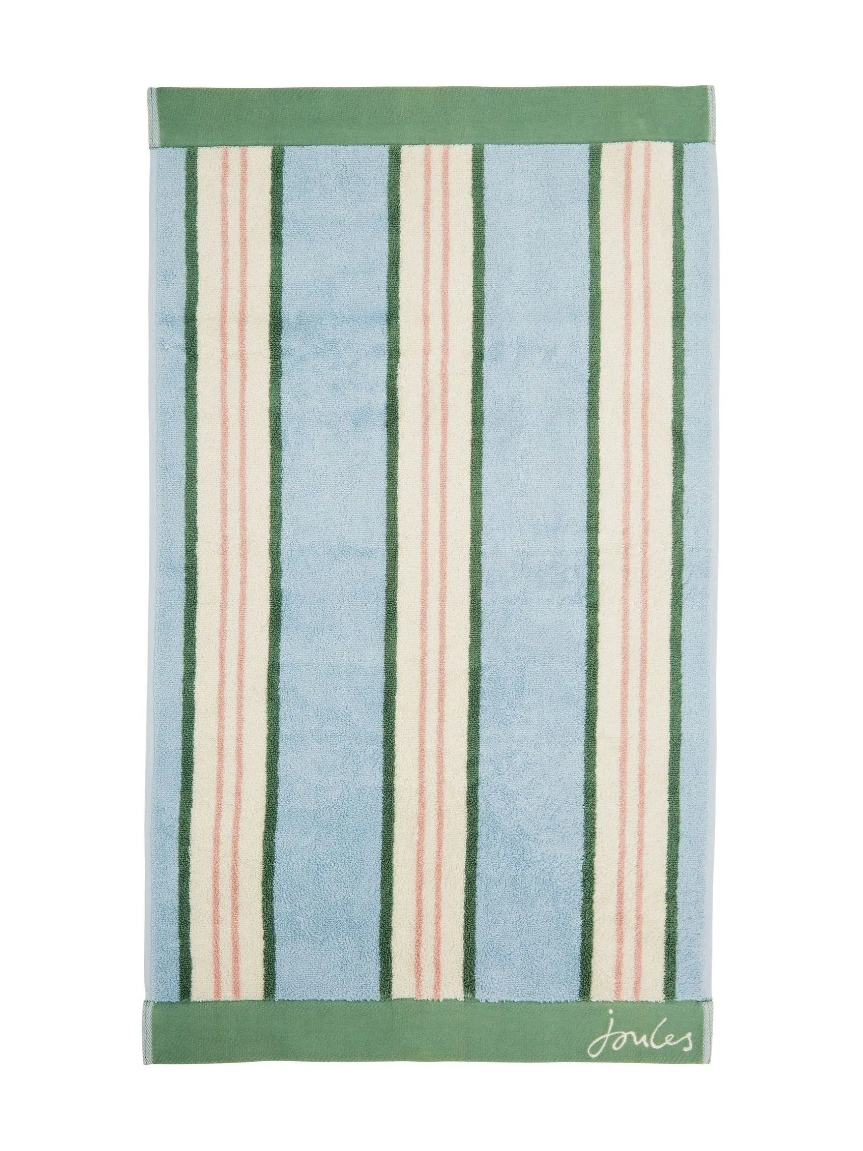 Crafted from fast-absorbing terry fabric and using a combed cotton yarn, the Juliette stripe towel is a practical yet cosy essential for your bathroom. As well as feeling good against the skin, it looks good too with an all over jacquard stripe in a preppy pastel palette of blue, crème and pink. It’s finished with contrasting colour ends and comes in three sizes (hand towel, bath towel and bath sheet). 100% cotton. Combed cotton yarn. Velour construction. Jacquard print. Fringe detailing to the ends. Hand towel: 50 x 90cm, Bath: 70 x 130 cm, Bath sheet: 90 x 150cm. Hand and bath towel: 600gsm. Bath sheet: 550 gsm.