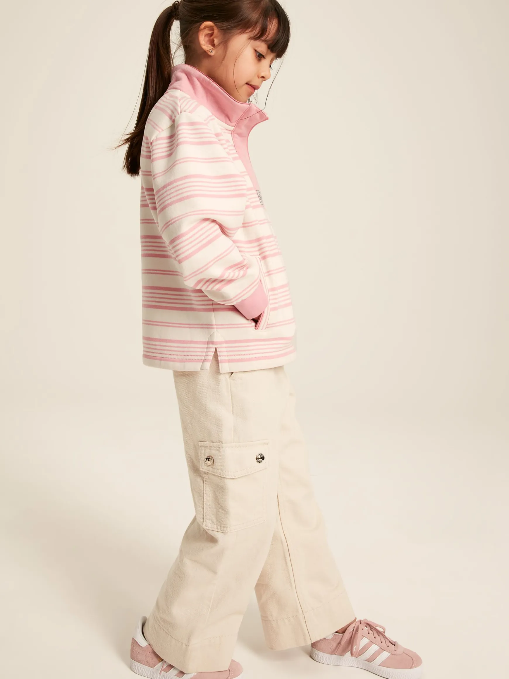 Matchy matchy! This sweatshirt is a mini me of our women s Burnham – a new favourite amongst our spring and summer collection. It s made from the same quality heavyweight jersey fabric and has deep ribbed hem and cuffs. Stand-out details include piped trims, a woven collar facing and branded ‘Joules’ embroidery behind the collar. It has a relaxed fit and a concealed popper placket, which makes building layers beneath it easy peasey. Side splits and pockets to the front add a practical finish. Choose from distinctive regatta stripes or peppy floral prints. Enduring, heavyweight jersey. Relaxed fit. Concealed popper placket. Dropped hem with deep side vents. Front welt pockets. Piped finish to the cuffs, placket, collar, pocket trim and back yoke. Tonal ‘Joules’ embroidery under the collar. Deep ribbed cuffs. Stripes and prints available.