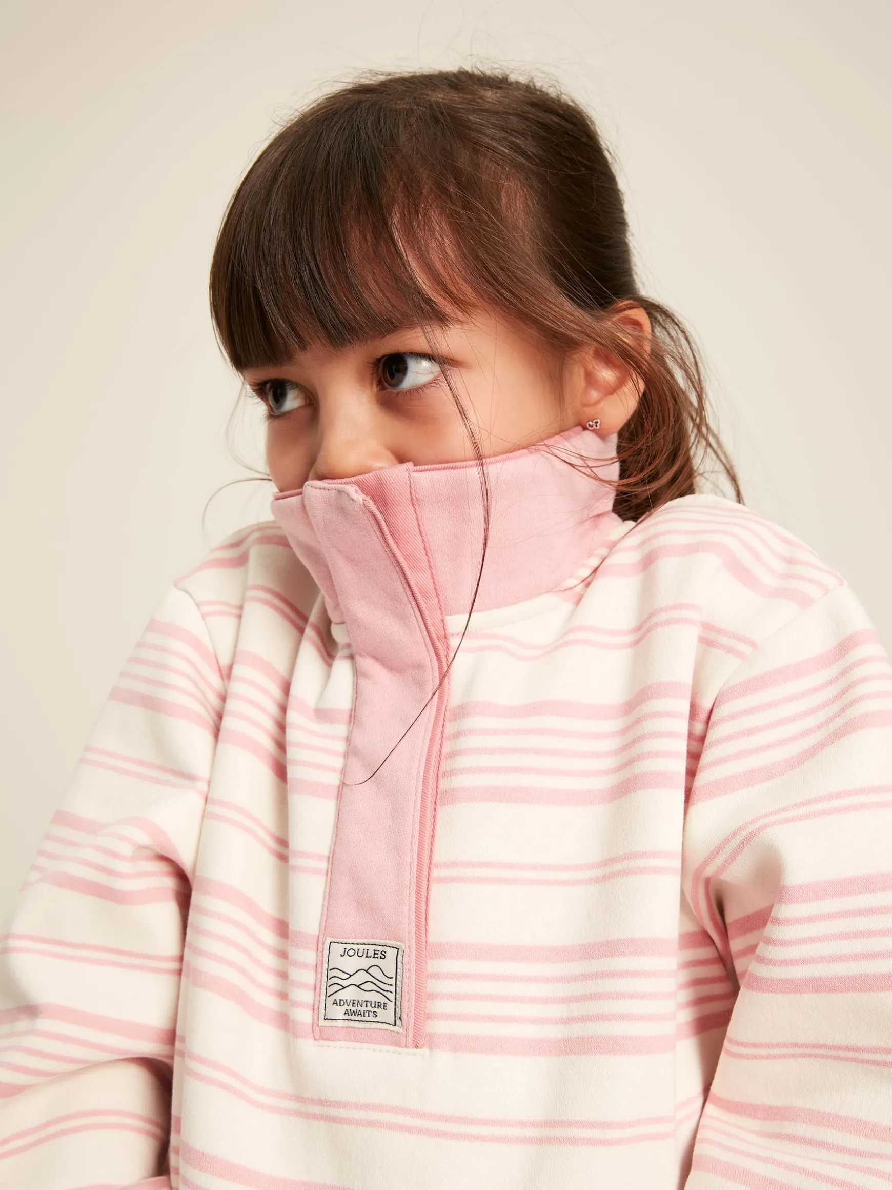 Kids’ Burnham Pink Stripe Funnel Neck Sweatshirt