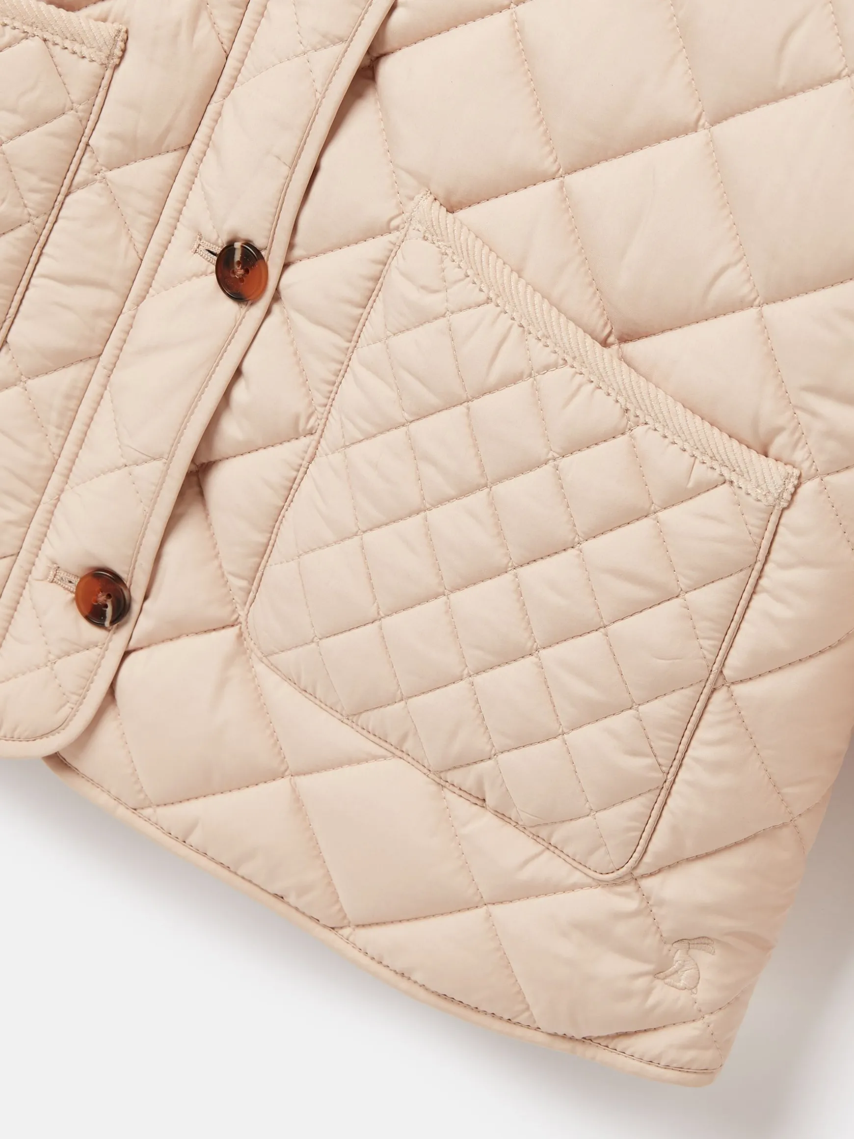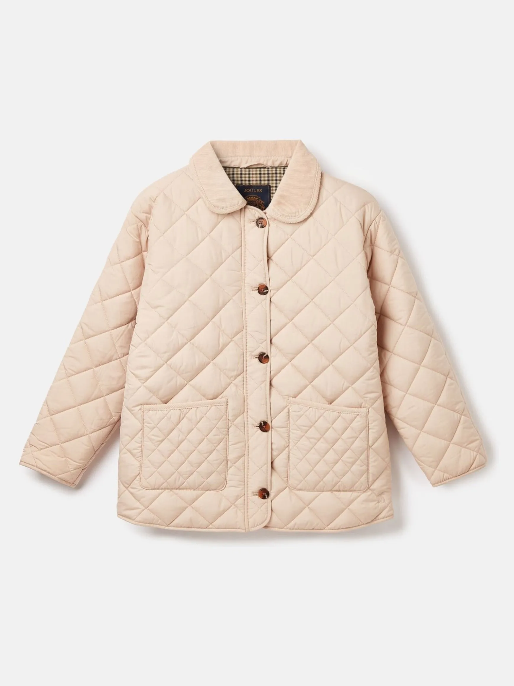 Add a touch of country influence into your little one’s wardrobe with the Mayberry quilted jacket. With classic diamond quilting, flat wadding a corduroy collar and trims, it’s a quintessentially British style that they’ll love running around in. The outer features a button down fastening, two front pockets and a curved hem, while inside there’s a checked cotton lining. Layer over a sweatshirt, leggings and a pair of cute wellington boots. Diamond quilting. Flat wadding. Checked cotton lining. A-line shape. Corduroy collar and trims. Button down fastening. Two front pockets. Curved hem. Joules embroidery under the collar.