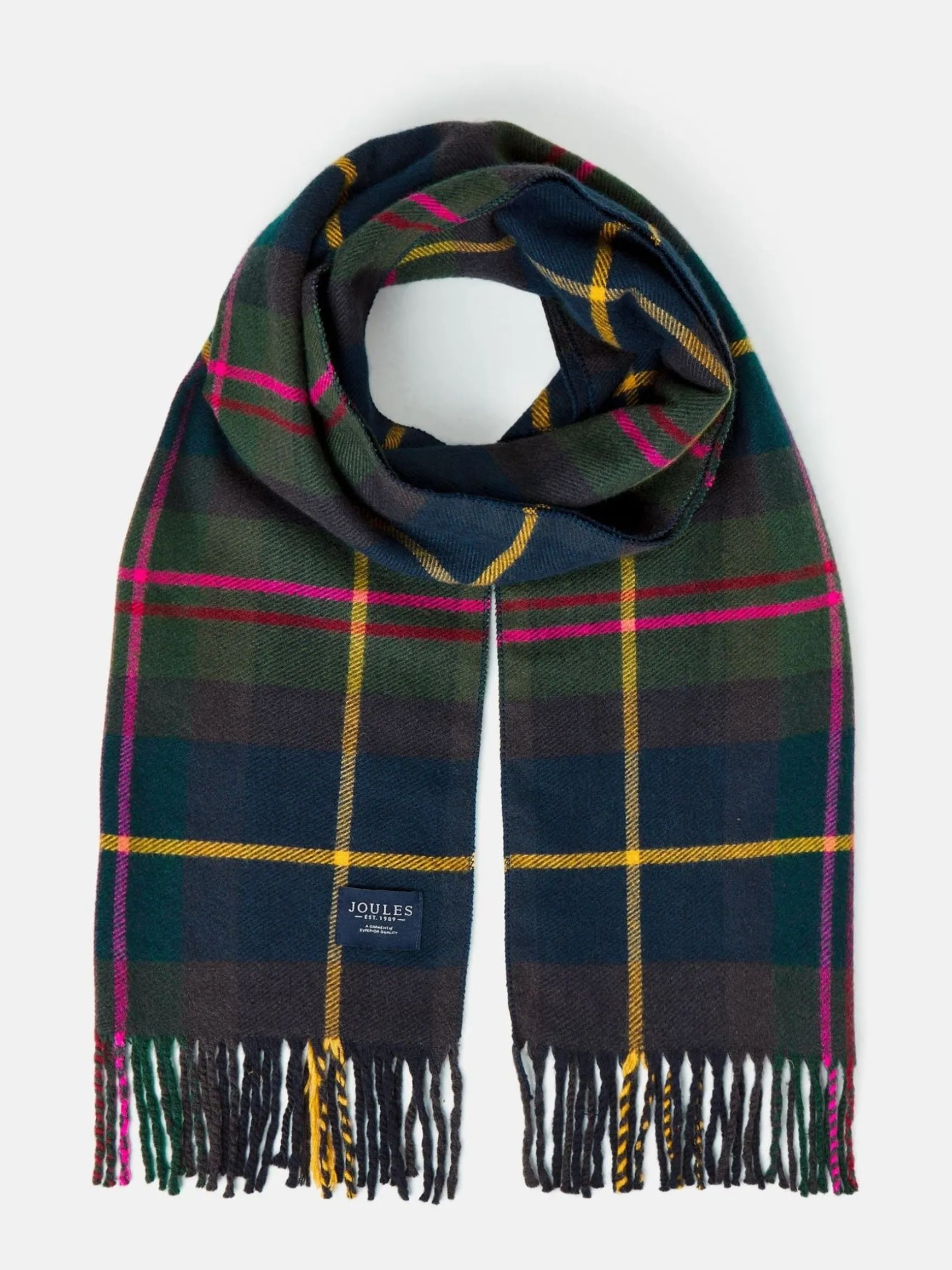 No cold weather attire is complete without a scarf, and the Langtree is a much-loved style back for another season. In a new line-up of checks, this scarf is adored for its soft hand feel, versatile styling and traditional tasselled detailing. While we have no doubt it will look great on you, it also makes a great gift idea too! Woven. Checked pattern. 170cm x 73cm. Tasselled ends. Joules branded tab to the edge