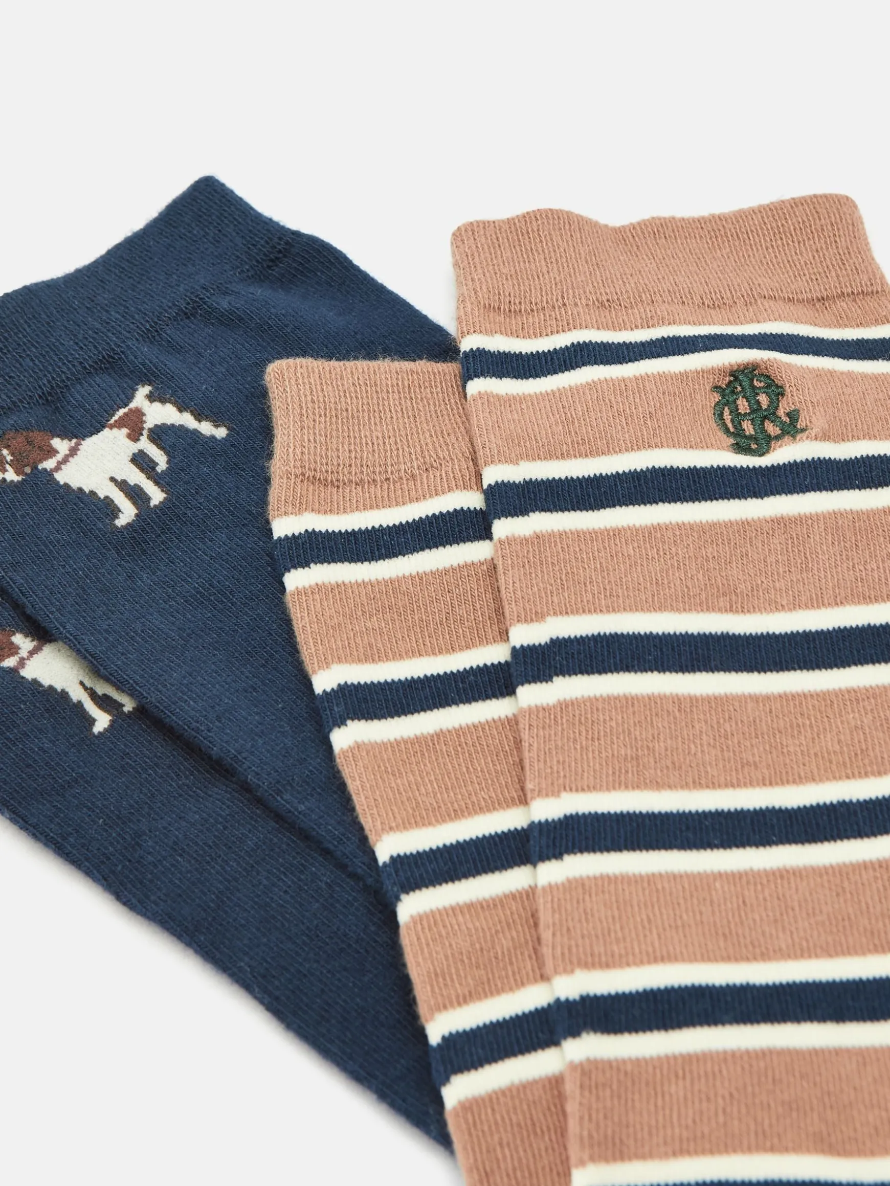 Men’s Kingsbury Navy/Camel 2 Pack Socks (size 7-12)
