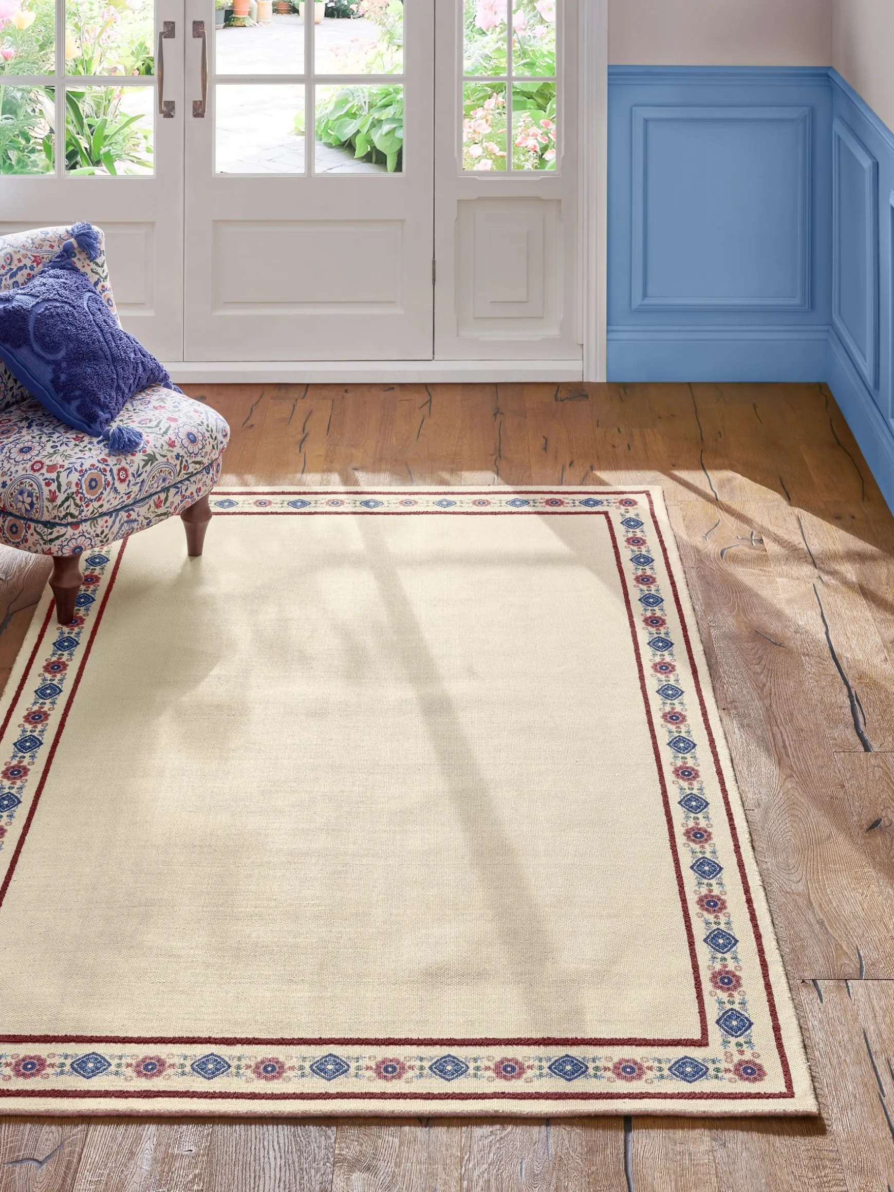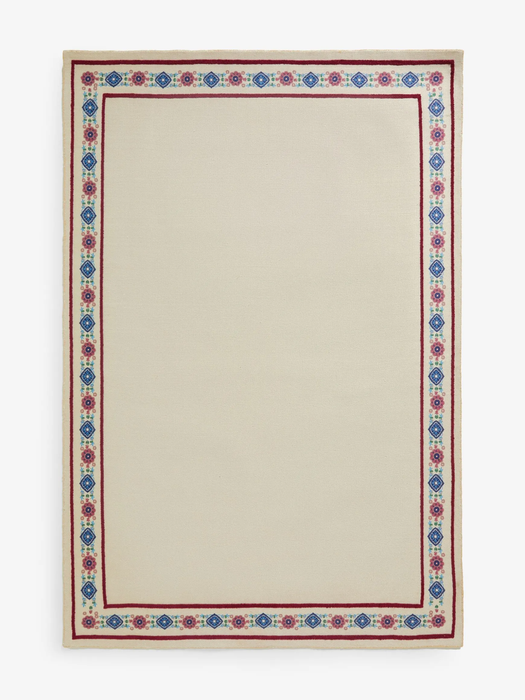 Combining both texture and style, the Blenheim rug is an easy way to elevate your home. Made using 100% cotton, it’s an enduring piece that will be part of your life and home for a long time to come. Its natural base colour will complement all spaces, while the tufted printed border adds detail. From the living room to the dining room, this versatile rug will no doubt become a talking-point wherever you choose to centre it.