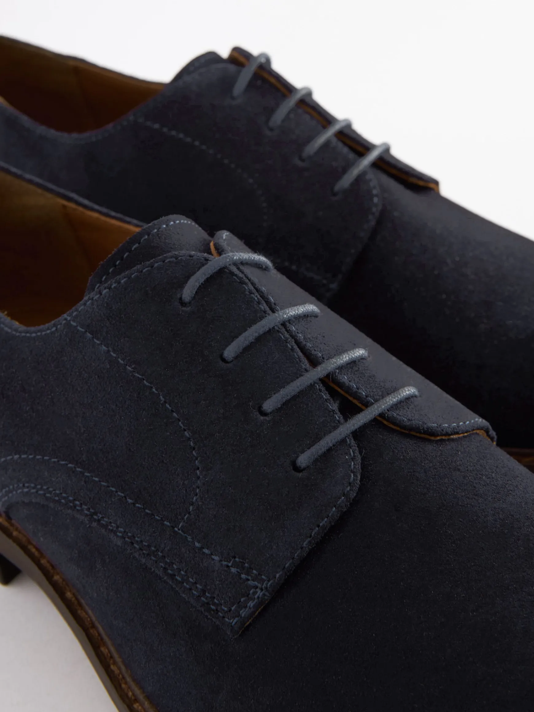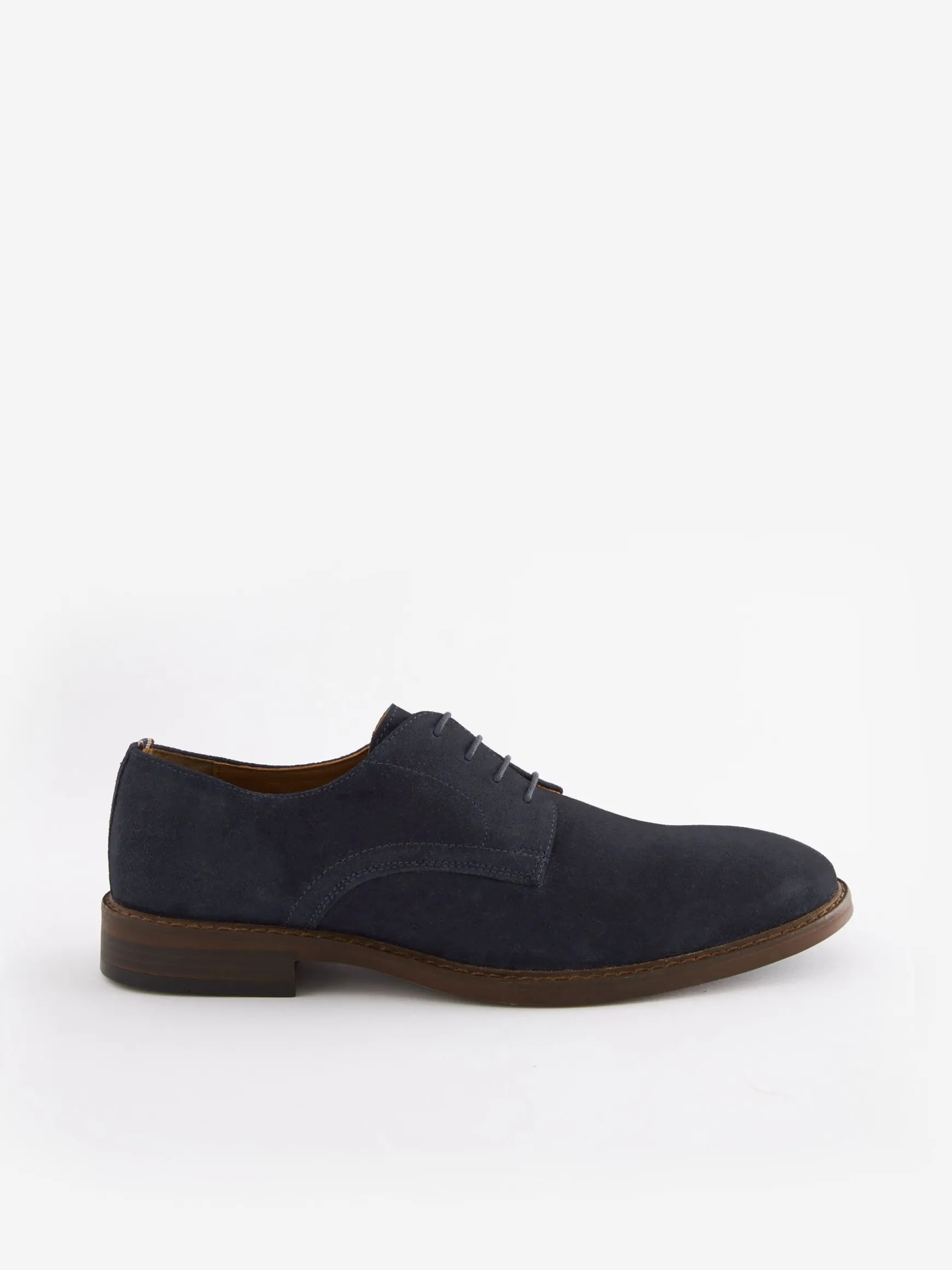 The Derby shoe has been a staple in men’s footwear collections since the 17th century. Honouring heritage and tradition, Joules presents this versatile and modernised version of the classic Derby, with a versatile design that can be worn with suit trousers, jeans or chinos.nnA soft suede adorns the upper, with a fastening showcasing premium DTM laces and a Derby overlay, leading to an almond shape toe. For added comfort, a breathable textile and leather lining resides inside with luxurious cushioning, provided by the Ortholite footbed. A durable sole unit sits underneath with a grippy outsole.