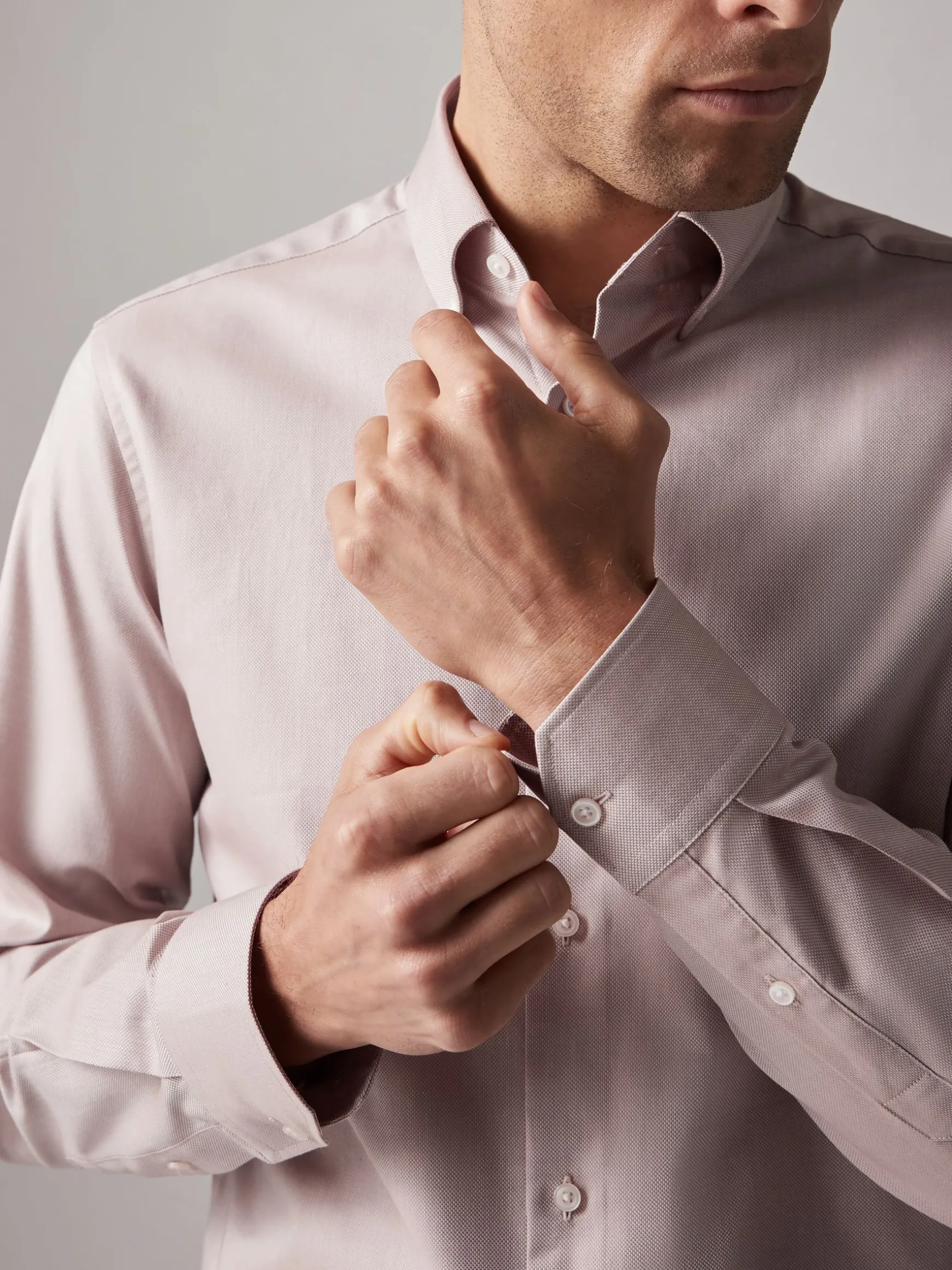 Well turned out style is easy to achieve with this shirt. Cut to a slim fit and made from soft cotton, it’s a piece designed for smart occasions. It has a button down fastening, single button cuffs and a button down point collar. The textured fabric finish elevates it beyond a basic. Cotton. Slim fit. Button down fastening. Single button cuffs. Button down collar. Textured finish.