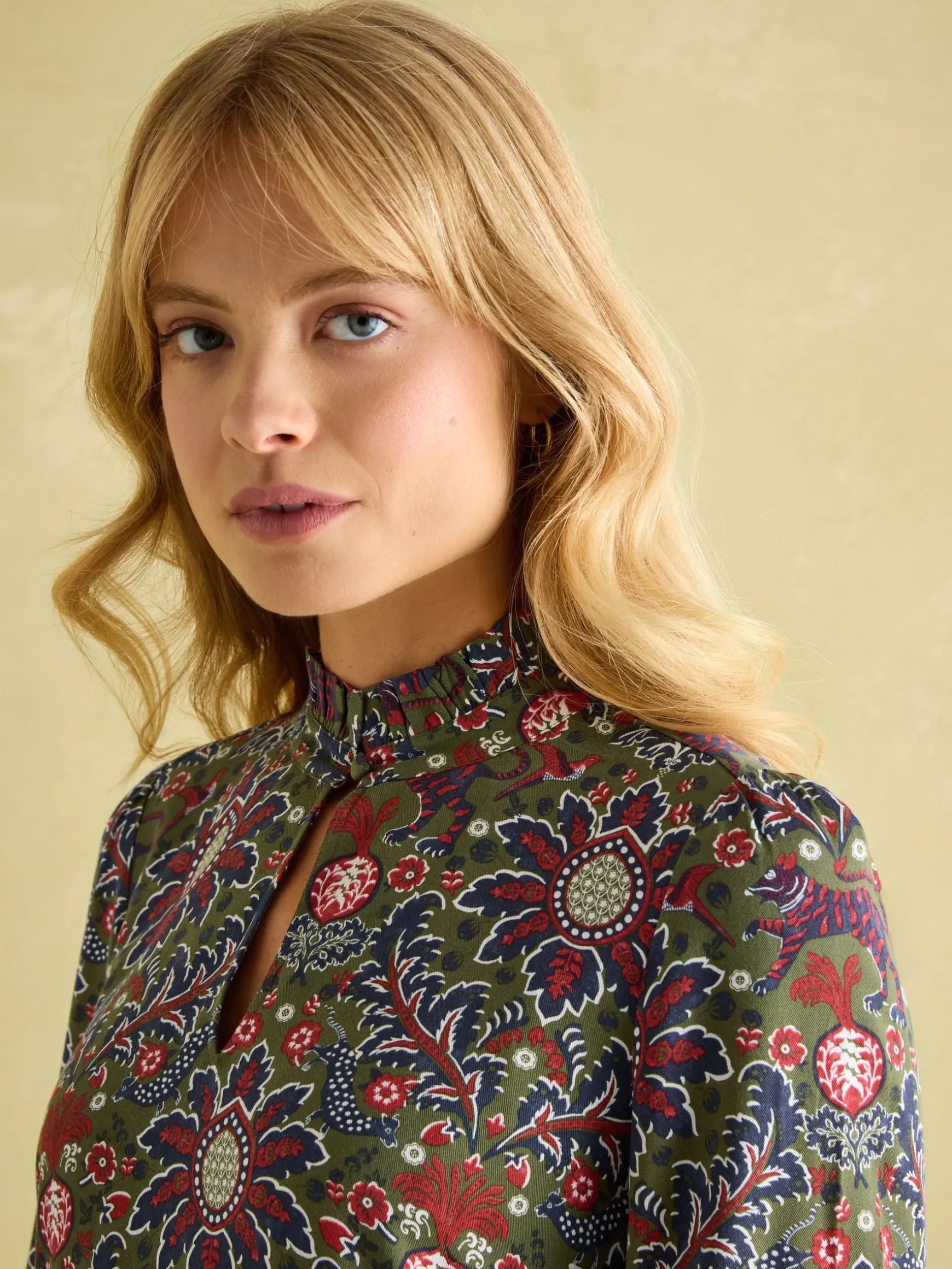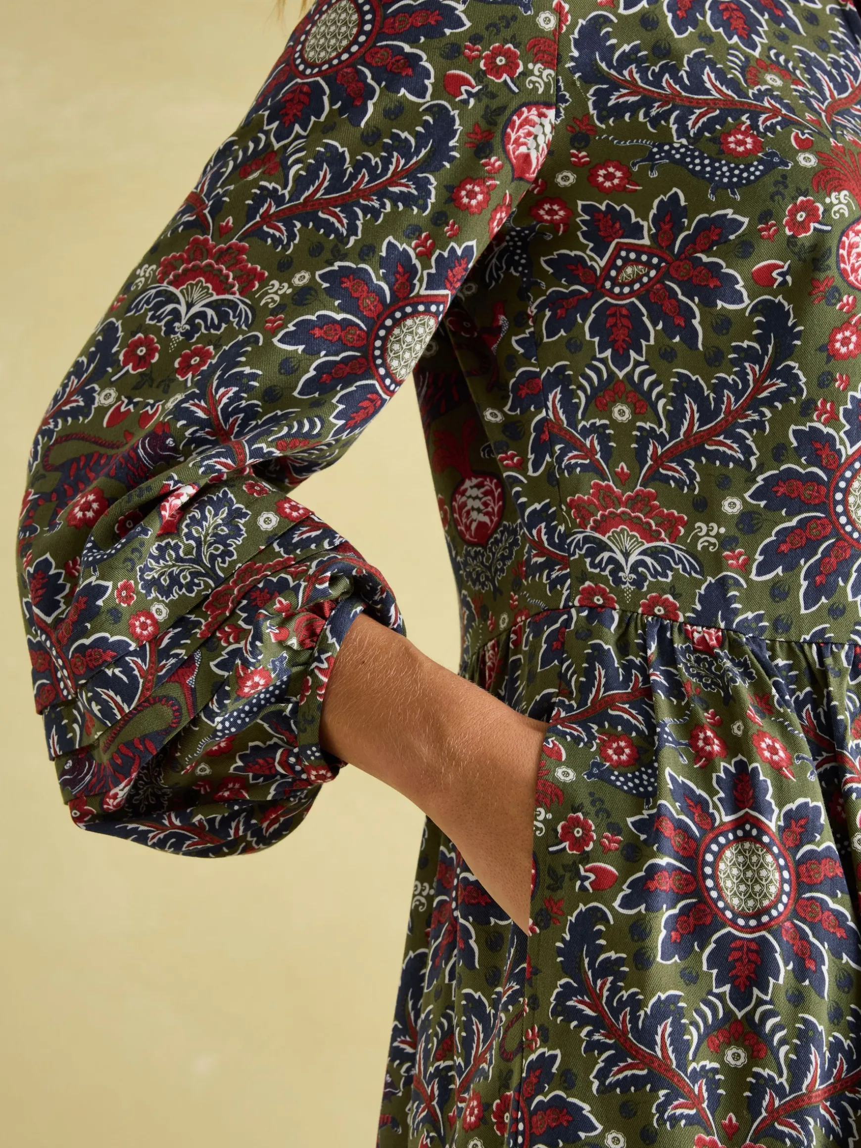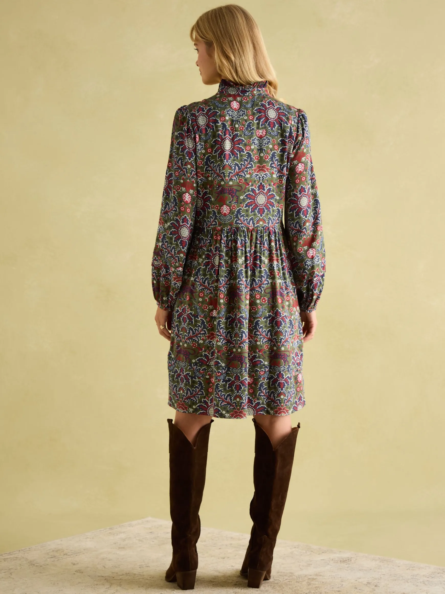 If you’re refreshing your wardrobe for the autumn season, then you’ll want to make space for the Petunia dress. A statement style you’ll always turn to, it falls to a knee length, is crafted from viscose and has long sleeves with button cuffs. The high frilled neckline and keyhole opening to the front is oh-so-flattering and adds just the right amount of detail. Pockets in the side seams are an always-handy addition, while the print which adorns it uses a colour palette that will carry you through the season and beyond. Viscose. Knee length. Long sleeves with keyhole button cuffs. Frilled neck. Keyhole button opening at the front. Gathered waistband.