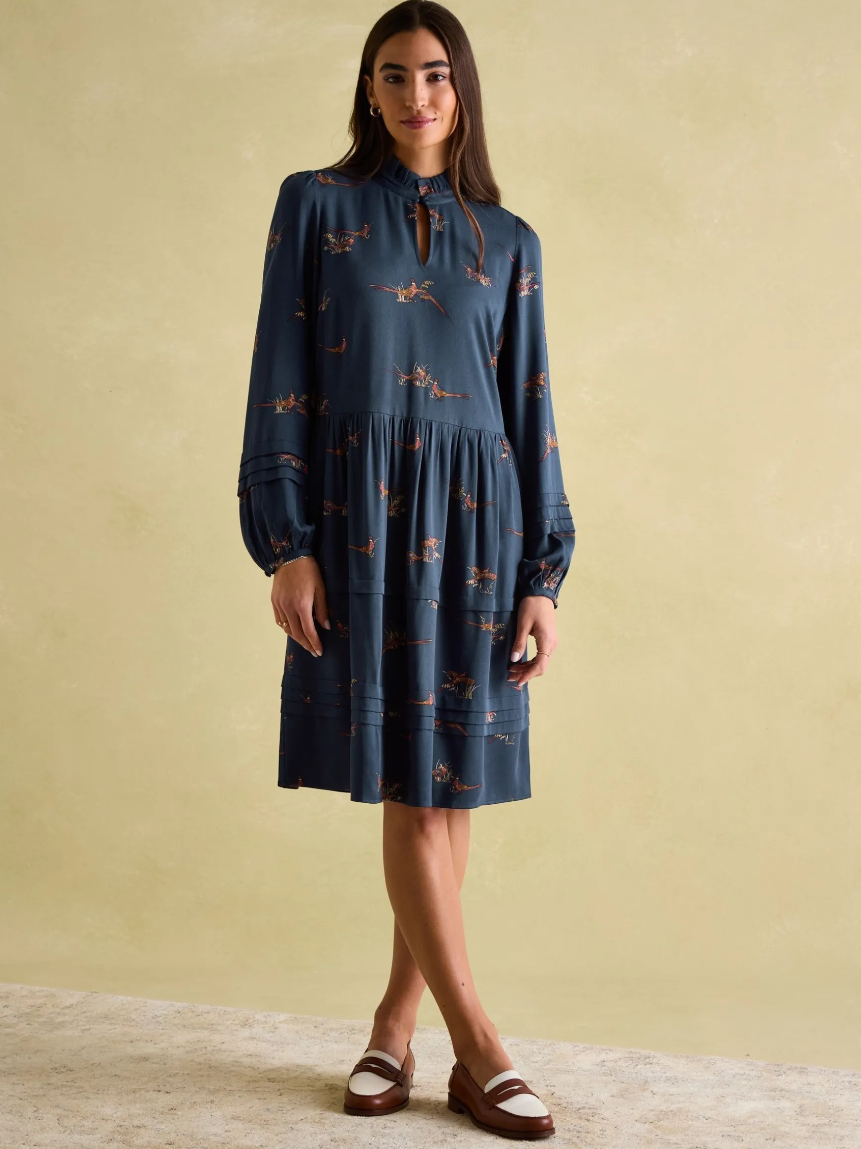 If you’re refreshing your wardrobe for the autumn season, then you’ll want to make space for the Petunia dress. A statement style you’ll always turn to, it falls to a knee length, is crafted from viscose and has long sleeves with button cuffs. The high frilled neckline and keyhole opening to the front is oh-so-flattering and adds just the right amount of detail. Pockets in the side seams are an always-handy addition, while the print which adorns it uses a colour palette that will carry you through the season and beyond. Viscose. Knee length. Long sleeves with keyhole button cuffs. Frilled neck. Keyhole button opening at the front. Gathered waistband.