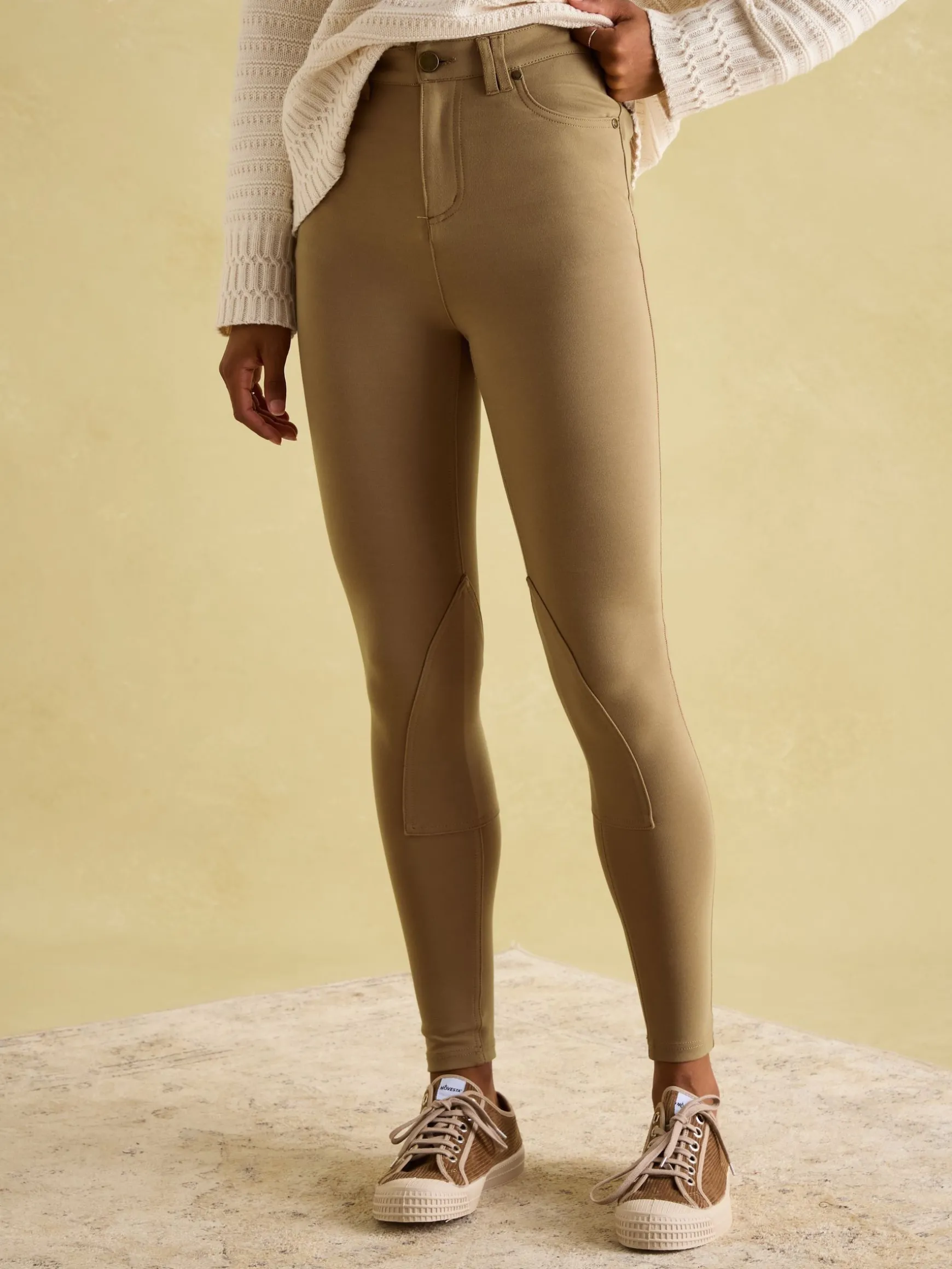 Inspired by the equestrian eventing scene, these slim-fit jodhpur-style trousers are perfect for styling with your everyday wardrobe. Made from soft and stretchy jerseys, they have been designed for comfort and style, with a mid-rise waist and classic equestrian patches added to the knees. They have two front pockets with an additional coin pocket, and two non-functional back pockets (to maintain a slimline silhouette). We’ve added belt loops so you can team them with your favourite accessory. Pair with one of our classic polo shirts or a shirt and blazer for a preppy look. Jersey. Slim fit. Zip and button fastening. Mid-rise waist. Two front pockets with an additional coin pocket. Two non-functional back pockets. Equestrian-inspired knee patches. Belt loops. Inside leg length: 69cm (based on UK size 12)