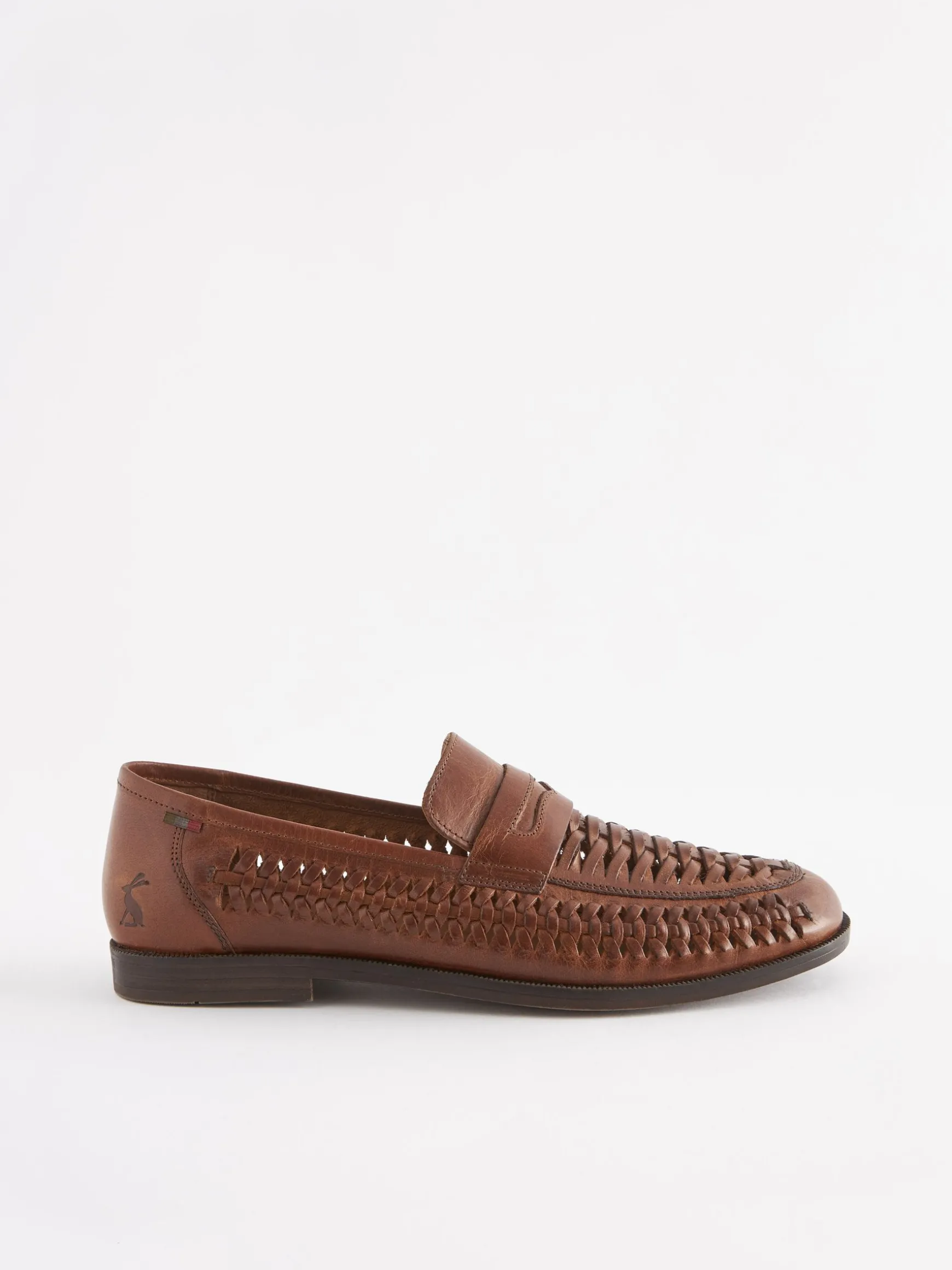 For a more formal alternative to sandals on a dry day, these smart loafers provide a versatile design that looks great with chinos, linen trousers, jeans or shorts, with a laid-back slip-on style.nnThe premium leather upper has a breathable feel, thanks to the woven toe box and side, with an embossed overlay strap borrowed from their not-too-distant cousin, the Penny loafer. A leather lining makes these loafers comfortable when worn with or without socks, boasting an Ortholite cushioned footbed for a padded feel with every step, sat atop a durable sole unit.