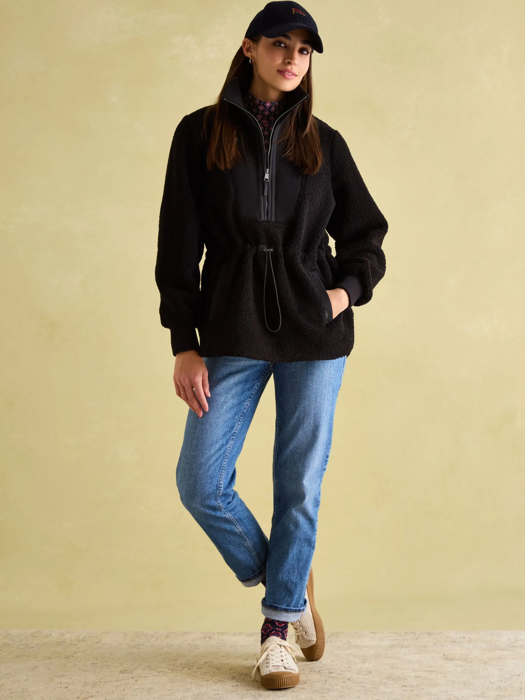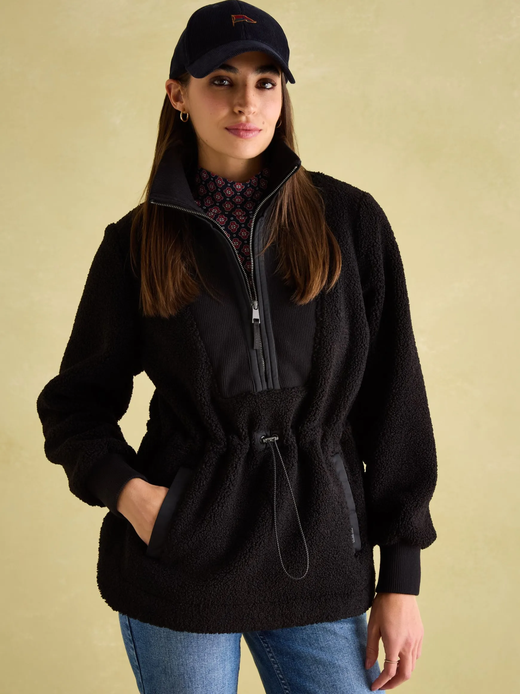 This is the simple fleece, elevated. Made for autumn and winter days, it will provide warmth, comfort and style in abundance. The relaxed shape means it can be pulled on over anything, the adjustable drawcord waist and curved dropped back hem keep things flattering, and practicality and style come in the form of handy pockets and and a stunning ribbed neck. This fleece will have you crossing your fingers for frosty mornings.nnBorg fleecenRibbed neckn3/4 zip fasteningnAdjustable waist drawcordnPocketsnDropped and curved back hem