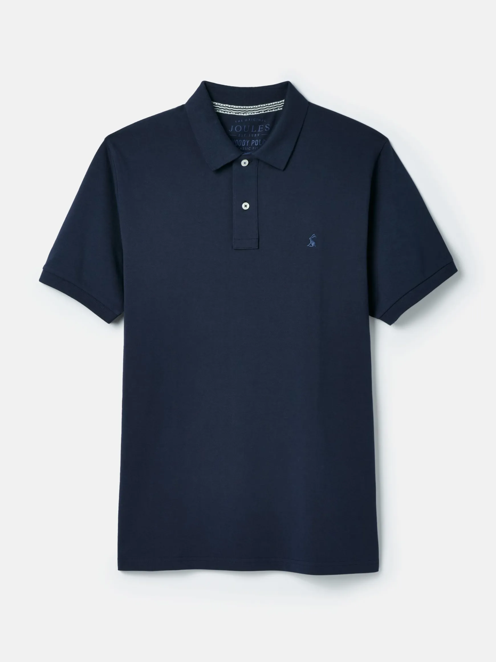 Our Woody polo shirt offers a versatile style in a dashing selection of colours. Perfect for anything from laid-back weekends to family shindigs. It’s crafted from hardwearing yet comfortable cotton pique and has short sleeves and a button placket. For those distinctive Joules touches there’s a branded undercollar, colour pop thread on the buttons and an embroidered hare to the chest. Cotton pique. Short sleeves. Branded undercollar. Button placket. Joules embroidered hare to the chest. Contrast details. Striped tape to the back neck.